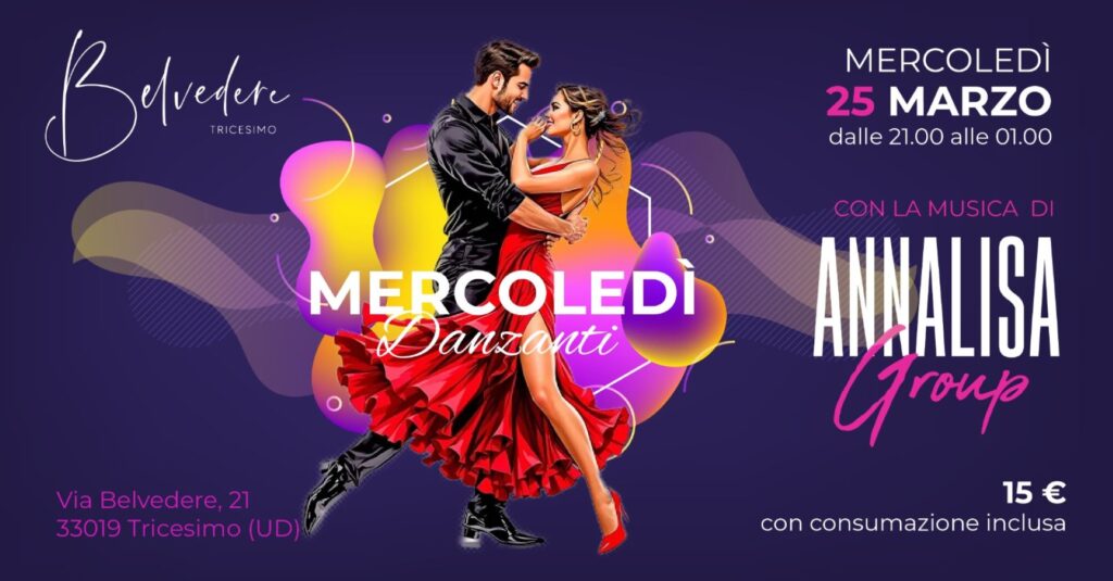 Chiudiamo marzo con energia e passione! Mercoledì 25 Marzo vi aspettiamo per una serata vibrante e coinvolgente, avvolta in atmosfere dinamiche e festose.