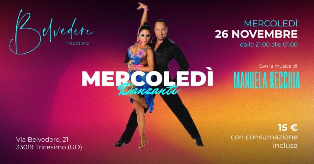 L’ultimo mercoledì di novembre si tinge di passione ed eleganza! Mercoledì 26 Novembre vi aspettiamo per una serata avvolgente e coinvolgente, dove la danza si fa arte e ogni movimento racconta una storia.